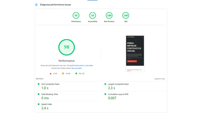 De ce contează? Pentru că Google PageSpeed Insights și optimizarea vitezei sunt strâns legate de SEO, de vizibilitatea în rezultate și de experiența utilizatorului. Cu cât îmbunătățești mai mult performanța site-ului, cu atât vei îmbunătăți și rezultatele afacerii.